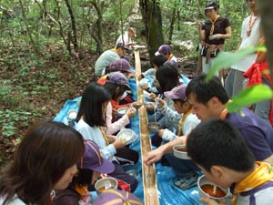 2日目の団合同イベントは、巨大流しそうめん。カブ・ビーバーは大いに楽しんだ。