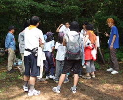 カブ隊・ボーイ隊の活動をビーバー隊も見学しキャンプのおもしろさを実感する。