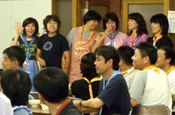 団合同全体セレモニーは宿泊棟の食堂で行った。