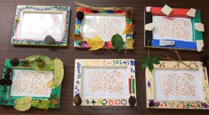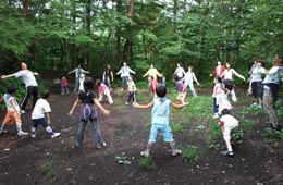 2日目の朝↓ラジオ体操ではじまる。その後、朝の散歩をしてフォトスタンドの材料を拾い集める。