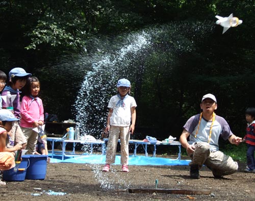 バブロケット↑これは傑作。お風呂入浴剤バブの力で飛ぶのだ。またカメラマンがうまいッ