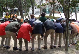 緊張をほぐし、6組に組み分けする(これもゲームの延長で組を分ける)