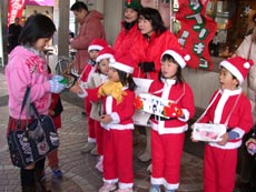 募金のあとは藤が丘商店街クリスマスイベントのステージでサンタダンスショー。