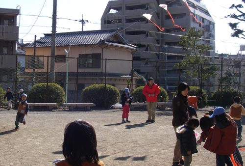 小春日和の中、4組の各「れんだこ」は気持ちよく青空に舞い上がった。