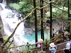 天候が悪いので「不動の滝」には観光客はだれもいない。われらの独占だ!。いつもながら荘厳な滝に感動。マイナスイオンもいっぱい吸った。