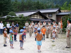閉村式では磯貝隊長がスカウトひとりひとりを表彰。2日間、雨に降られることなく、ホント楽しいキャンプだった。(完)