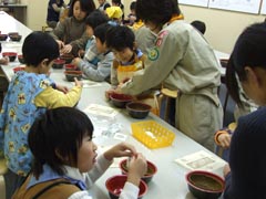 | 2007年ビーバー隊 豆腐工場見学(ザルどうふ作り体験) |