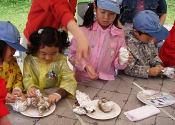 棒についたクーヘンを食うか?ナンチャッテ みんな もってくの はやッ !!