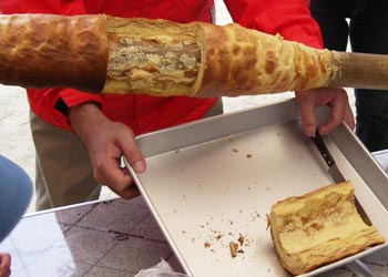 バームクーヘンとカートンドッグ(牛乳パックで焼くホットドック)だ