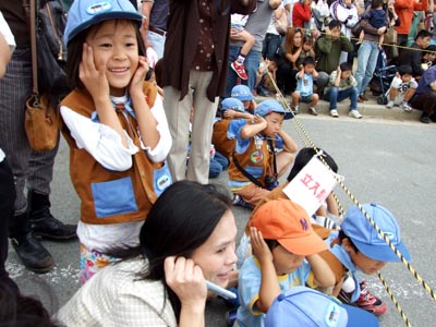 小さい子は泣き出すが、耳を押さえてじつにおもしろい。