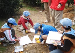続いてみかん狩りだ。各組別れ、おいしそうなみかんを探しリーダーに採ってもらう