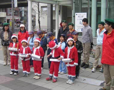 藤が丘駅周辺に3箇所に別れて元気よく募金活動を行った。