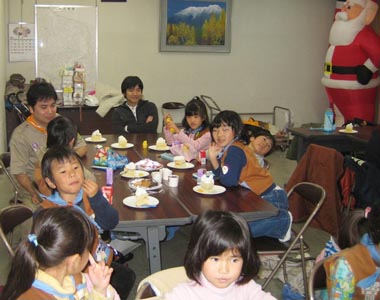 突然のサンタクロースの登場にスカウトも大興奮!!