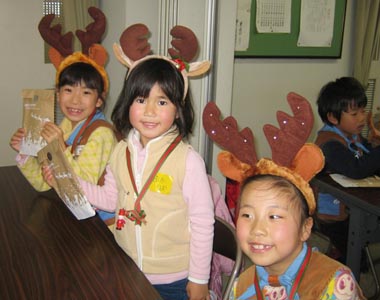 …かわいいトナカイさんに変身↑… キーワードビンゴを楽しんで順番にプレゼントを選んでいく↓中身は何かな?