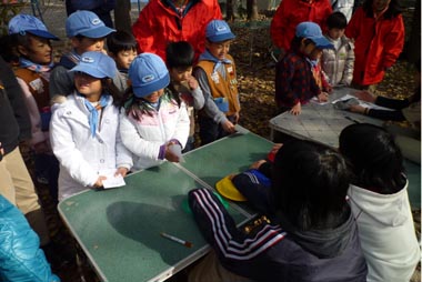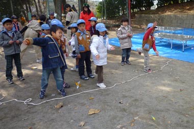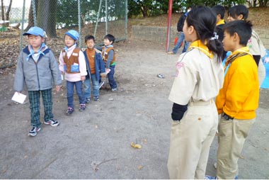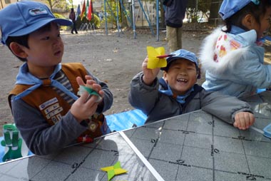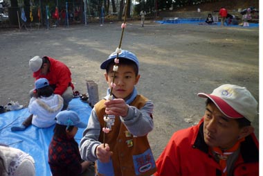 もちつきの後はボーイ隊のお兄さん・お姉さんたちのポイントラリーに参加。ビーバーのちびっこ達には、いささか難しかったかな?!