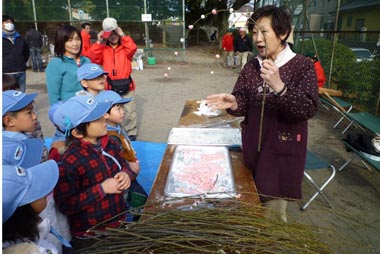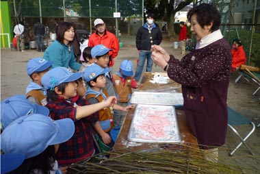 最後は今日ついたおもちを使って花もち作り。きれいに仕上げて、お正月お家に飾りましょう!