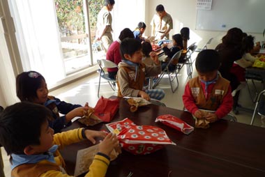 今日は待ちに待ったクリスマス会です。プレゼント交換においしいケーキ・・・楽しいことがいっぱい!