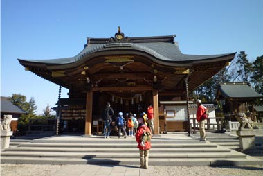 藤が丘から約40分歩いて長久手町・景行天皇社にやってきました。まずは鳥居の前で整列。