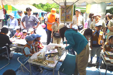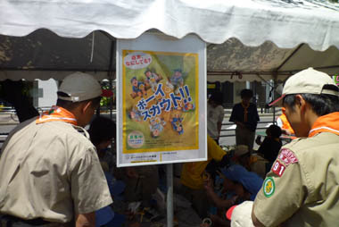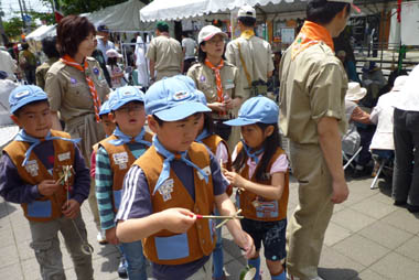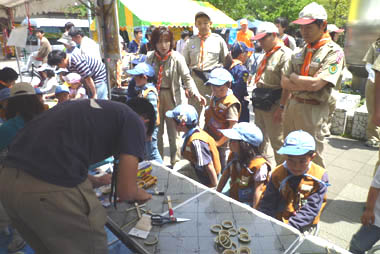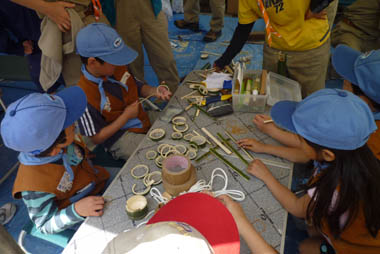開会宣言のあとは91団のブースに移動し、ボーイ隊のお兄さんたちから工作を教えてもらいました。