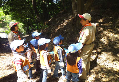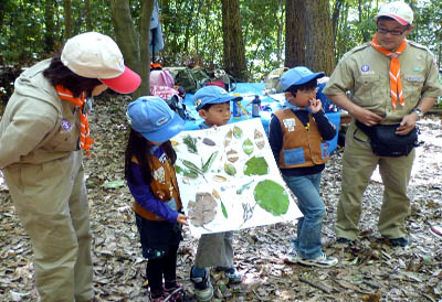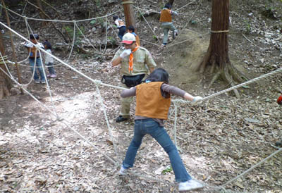 ▲森の仲間がスカウトを歓迎に出迎えてくれました。 ▲これは楽しいゾ。ロープ渡り。でもちょっと気を抜くと落っこちちゃう!