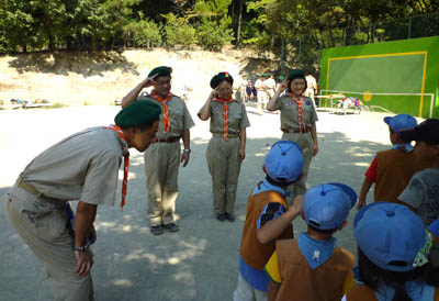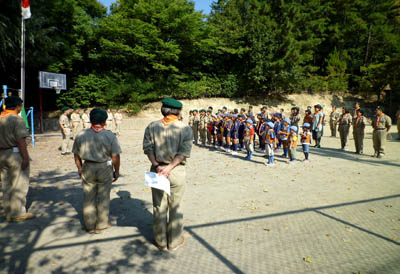今日から平成23年度の新しい活動が始まります。団合同上進式です。
