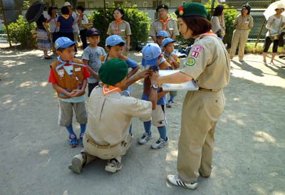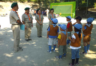 ▲この時点で組長と次長を解任です。ご苦労さまでした! ▲上進するスカウトはこの後ロープを飛び越えてカブスカウトになりました。オメデトウ!