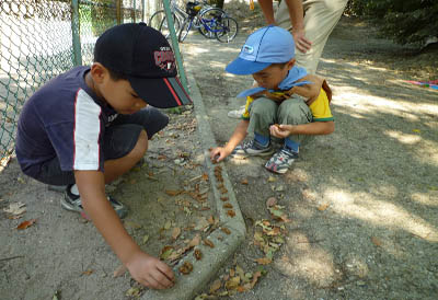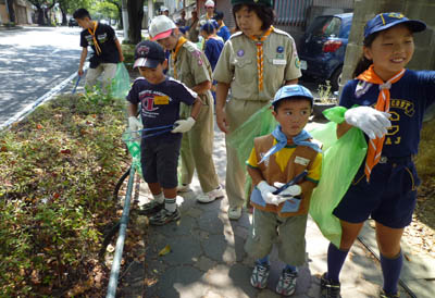 ▲新年度のビーバー活動開始です。セミの抜け殻探し。ウワー、こんなにある!▲カブ隊以上と合流して藤が丘周辺のゴミ拾い「カントリー大作戦」をしました。