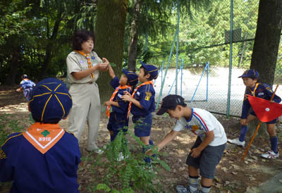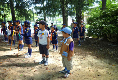 ▲カブの休憩時間にカブも乱入。新技”レタス!”てナニ? ▲カブ隊の訓練に入れてもらって訓練。”回れ右ってムズカシー!”