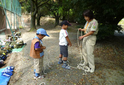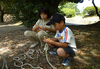 ▲ロープの練習です。リーダーの手元からはスルスルと結び目が出てくる!スゴイ!▲つい集中しちゃうね。