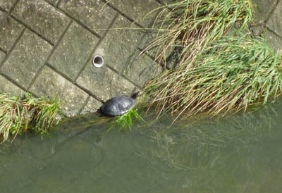 ▲まずは尾張旭にある印場中央公園だっ!駐車場から矢田川の支流沿いを行くよ。▲亀が甲羅干ししていたのを発見!