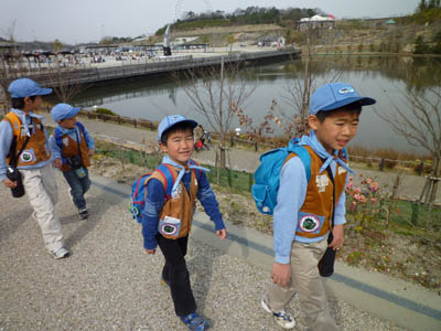 ▲朝から暖かくてとても気持ちのよい天気になりました。 ▲まずはボーイスカウト名古屋地区がやっている「森」のエリアを目指します。