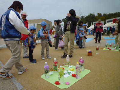 ▲いよいよ愛知県中のビーバー・カブスカウトが一同に集合するセレモニーです。 ▲こんなにも多くの仲間が集めたペットボトルのキャップで200人の命が救えるワクチンが買えるなんてスゴイ!