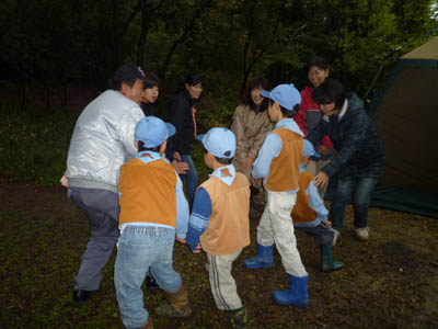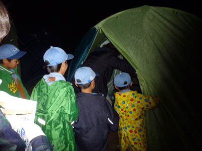 ▲みんな、カブ隊に上がったらテントで泊まれるんだよ。いい経験ができました。