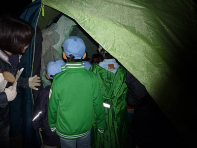 ▲解散後、せっかくなのでカブ隊が今晩泊まるテントを見学させてもらいました。▲こういうところで寝るんだね、すっごく楽しそう。