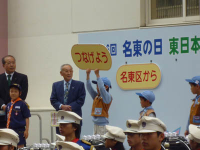 ●例年この時期に開催されている「名東の日」が今年は東日本大震災復興支援のイベントとなり、91団ビーバー隊としてもオープニングに参加しました。