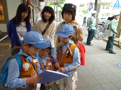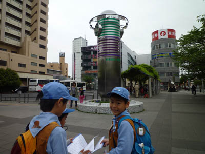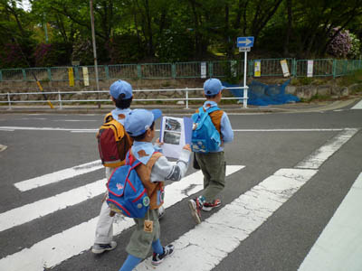 ▲イベントが終わったらいよいよ本日の活動「藤が丘を探検しよう」です。 ▲隊長からもらった「冒険の書」を頼りに藤が丘の町を不思議を解きながら歩きます。