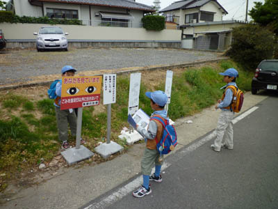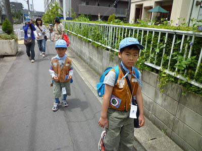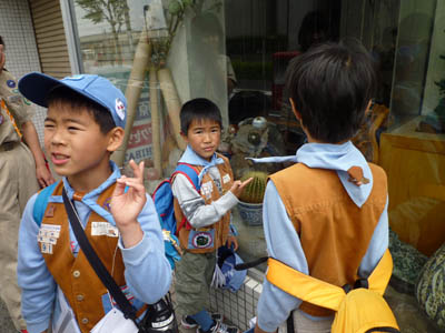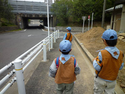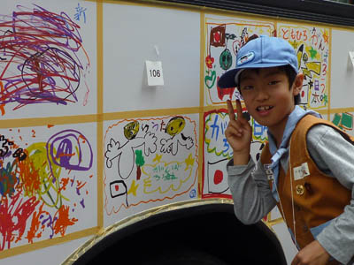 ▲震災復興を支援のスローガンを読み上げ、パネルを掲げてゆきます。 ▲ビーバースカウトはカブ隊のお兄さんたちに負けないくらい立派にやれました。