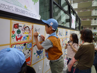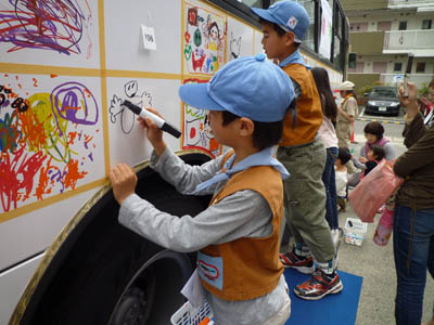 ▲この日は名東の日にイベントで「お絵かきバス」がありました。エ!バスに落書きできるの?!