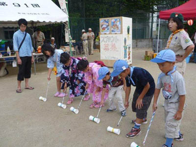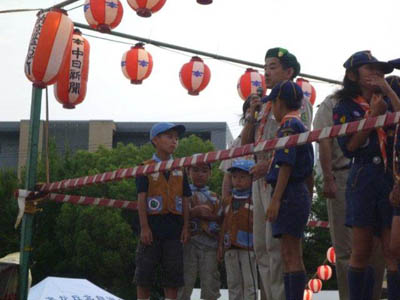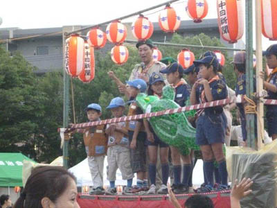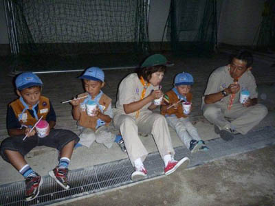 ▲活動の一環で91団特製のカキ氷を頂きました。オイシイー! ▲セレモニーです。みんな遅くまでガンバッタね。