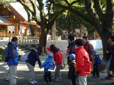 ▲今回は熱田神宮を拠点に活動している団の御厚意で普段入れないところでお参りさせてもらえました。▲ベンチャースカウトと一緒です。