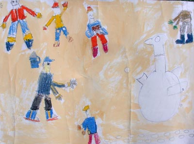 その次に雪像作りをしました。その時はもう汗びっしょりで作っていました。