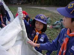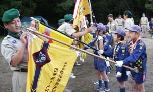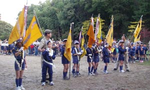 その後4時にカブラリー開会式。参加綬を隊旗にもらった後、ワイドゲームで他団のスカウトとも仲間になった。