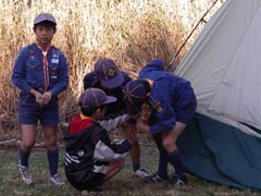 カブラリーが始まる前に組ごとにデン(巣)を作り、テントの設営もおこなった。