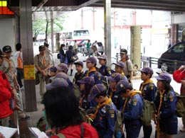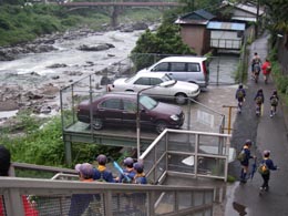 朝はドシャブリの雨。みんなカッパを着て傘を持っての集合。