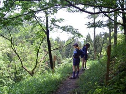薄暗い林の登り坂を行くと、もう汗ばんでくる。