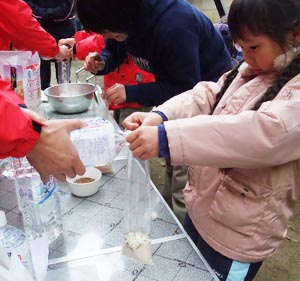 次の日のお昼ごはんは、災害時用のごはん作りだ〜