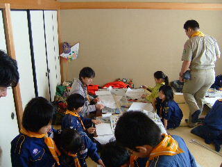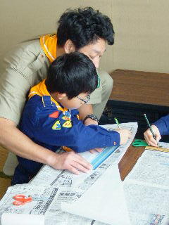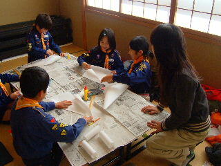 「凧つくり」やったことあるひといるかな? 最初は隊長が作った見本をみての説明だ。