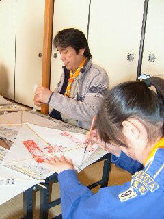 結局、凧つくりは、何とか終わったけど、空に揚げるとこまでは、時間切れで出来なかった。(T-T)(;o;)