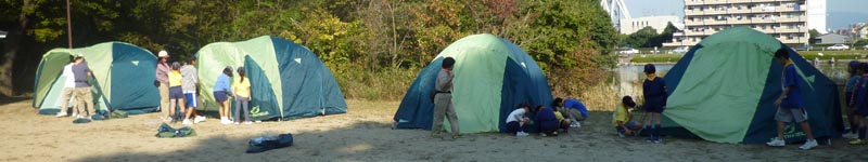 テント設営の様子は各組の写真(↓)にマウスをあてると、スライドショーが始まるョ。
