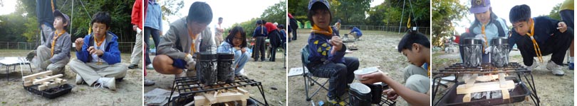 組長とDCはハンゴウ炊飯を担当。